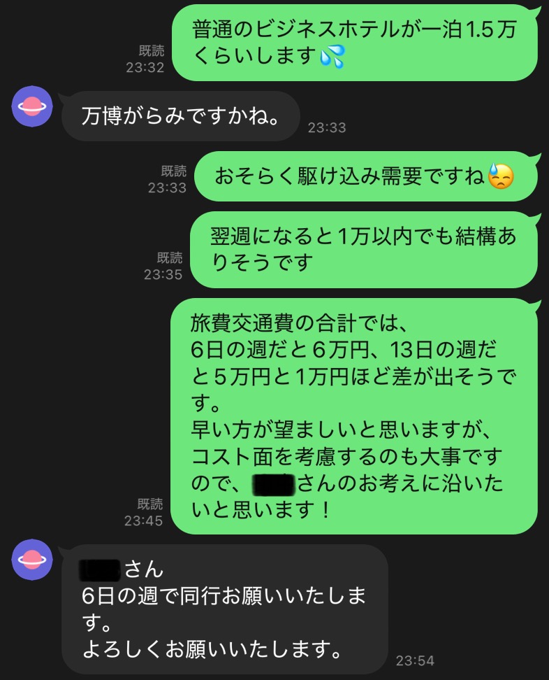 旅費交通費はコンサル生さんにご負担いただいているので、「少し後にずらした方が安く済みそうです」とお伝えしましたが、少しでも早く始めたいTさんは「予定通りでお願いします」と心意気を見せてくれました^^